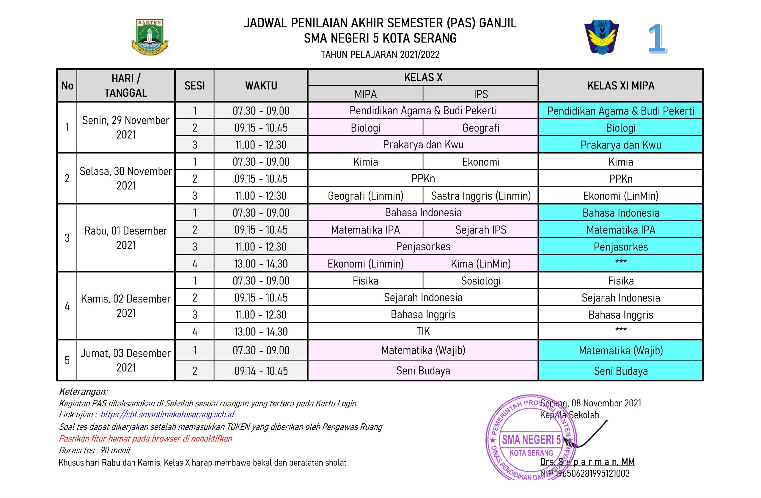 Berikut adalah jadwal pelaksanaan PAS 2021/2022